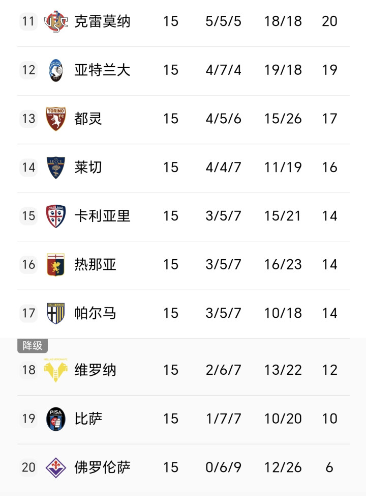 科莫6胜6平2负排名第6,球队上轮客场0-4惨败国米,此前联赛6胜6平的不败纪录就此终结,而且攻坚能力不足,近7场比赛有4场未能取得进球。